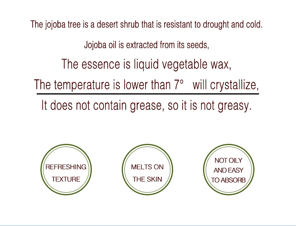 Jojoba Moisturizer – Aids dry skin by balancing the skin's moisture level, Ideal consistency for use in massage. Being a waxy substance, Jojoba oil can seal in moisture and create and effective barrier to harshful elements.