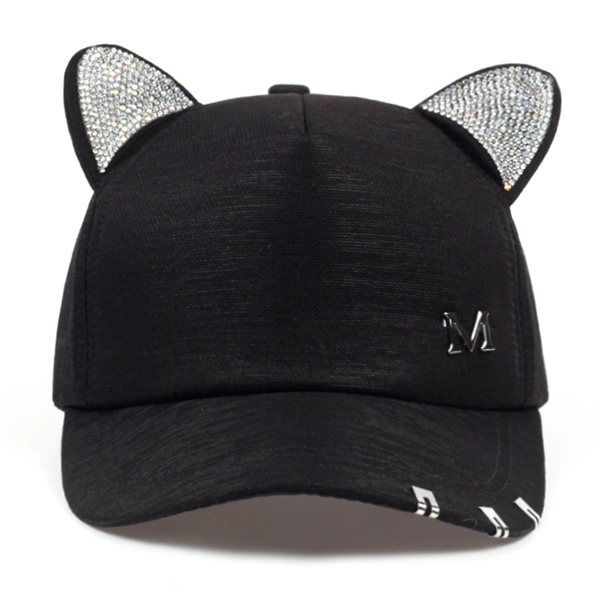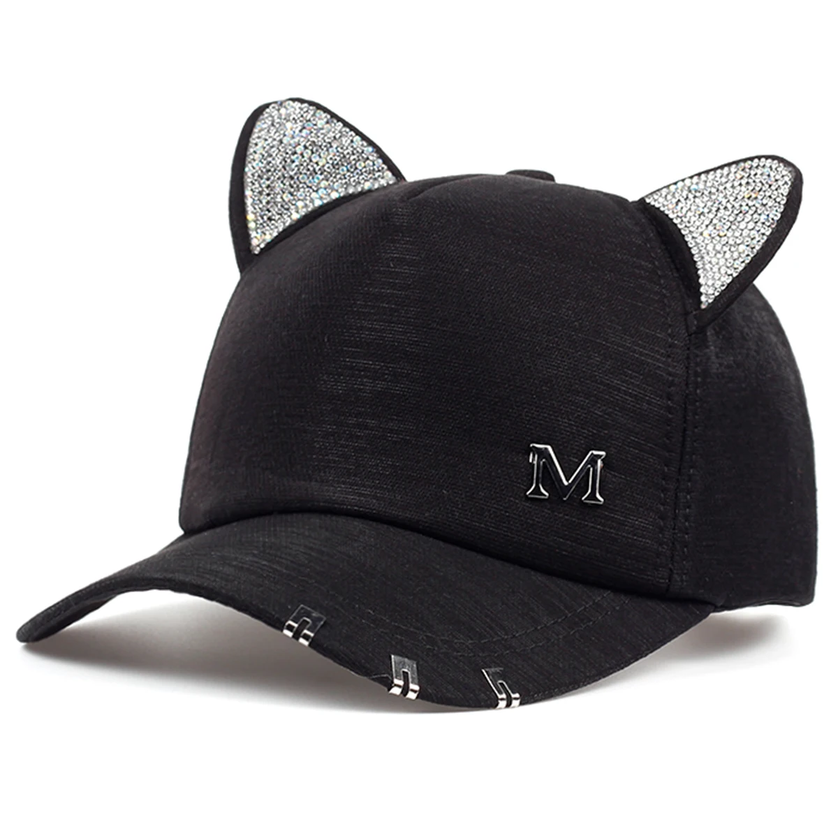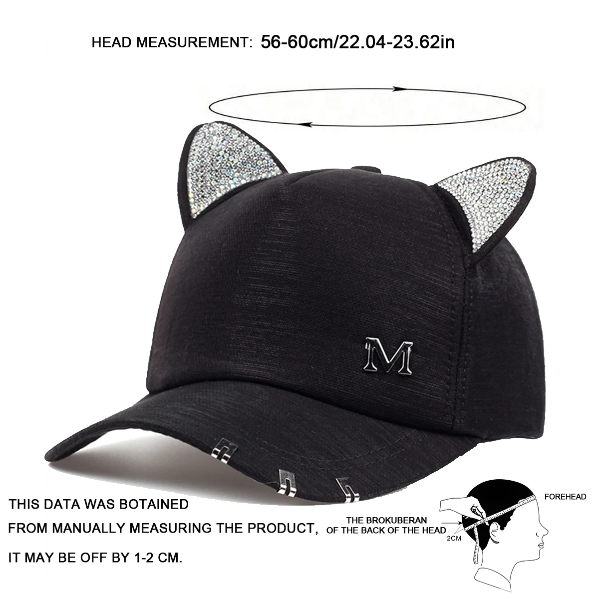 1piece Unisex Cat Ears Hot Drills Baseball Cap Outdoor Adjustable Sunscreen Leisure Hat Spring Autumn Travel Tourism Vacation