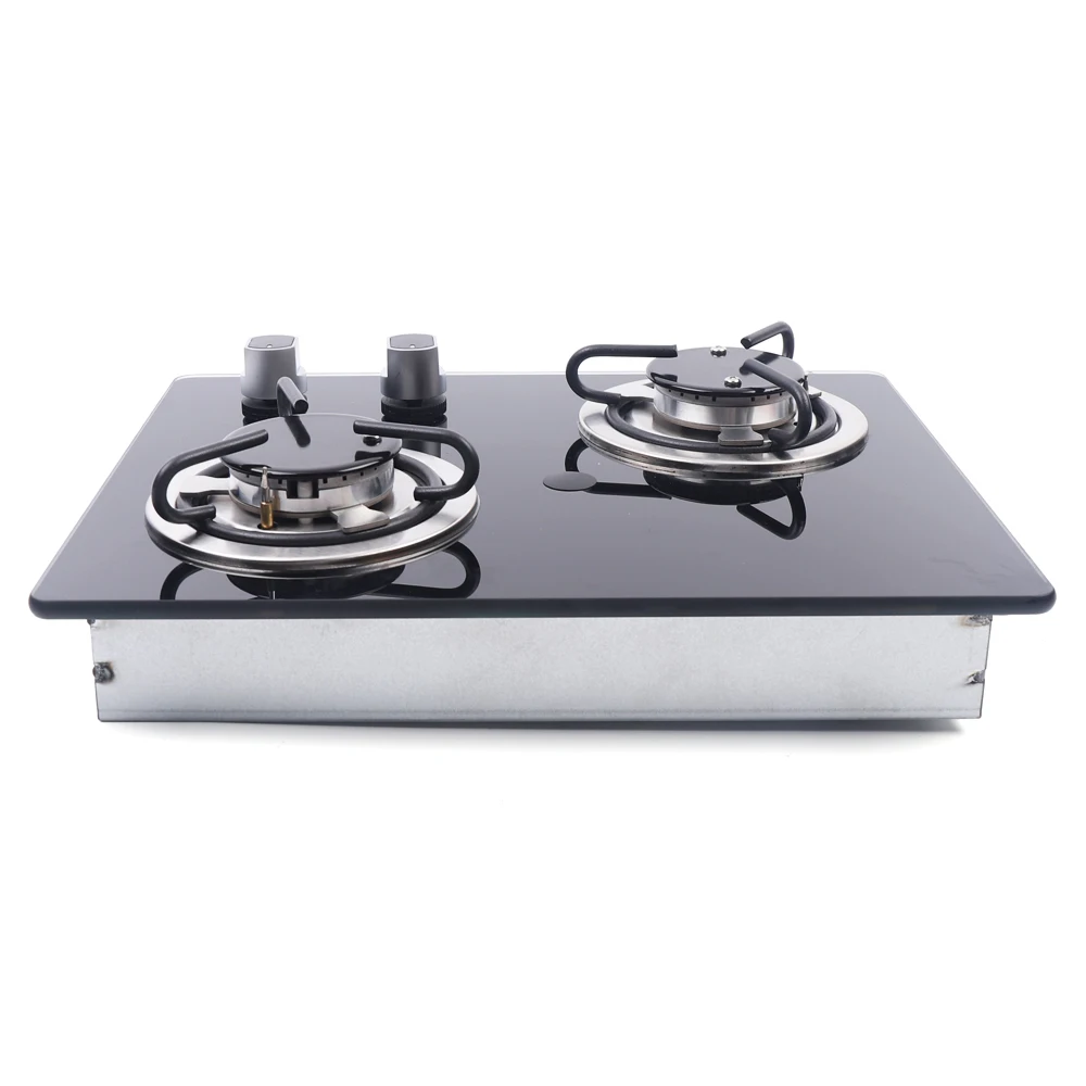 380*300*70mm Boat RV Camper LPG Gas Stove Hob with 8mm Thick Tempered Glass-Built in 2 Gas Burner
