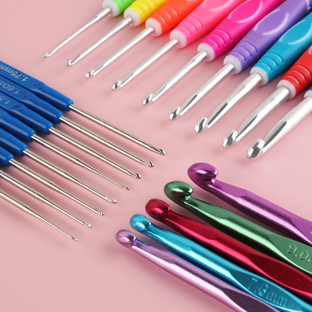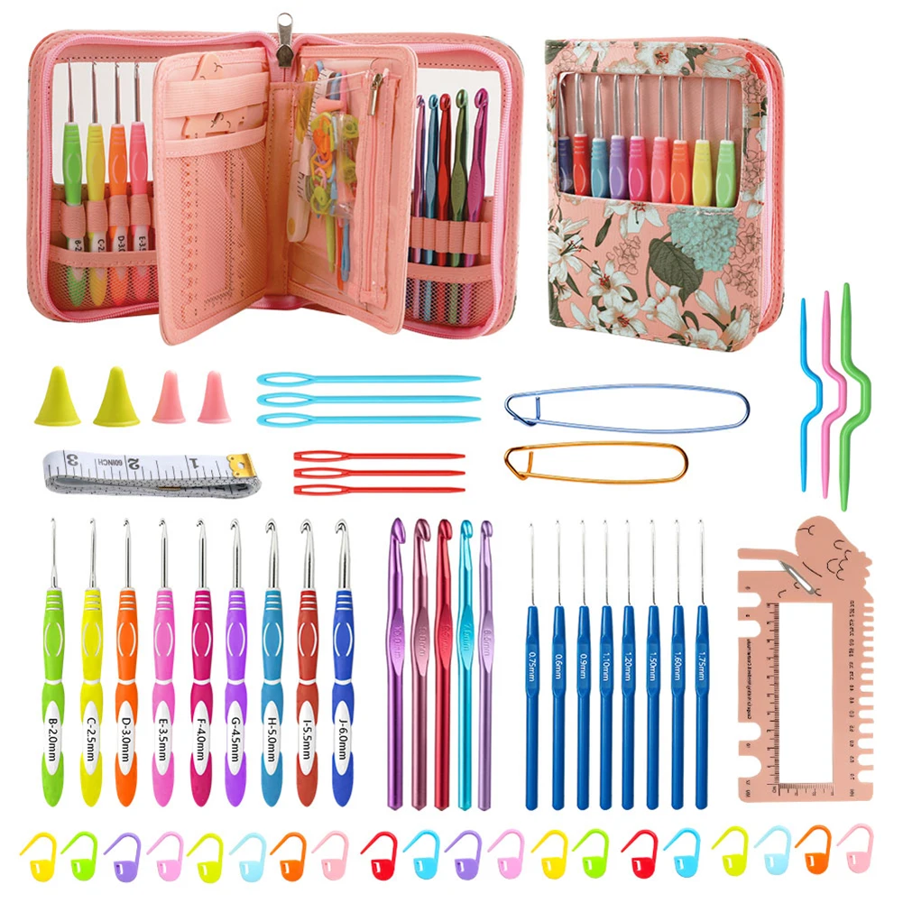 Aluminum Crochet Hooks Needles TPR Soft Handle Yarn Crochet Sets Comfortable Grip with Storage Bag for Sewing Weave Tool