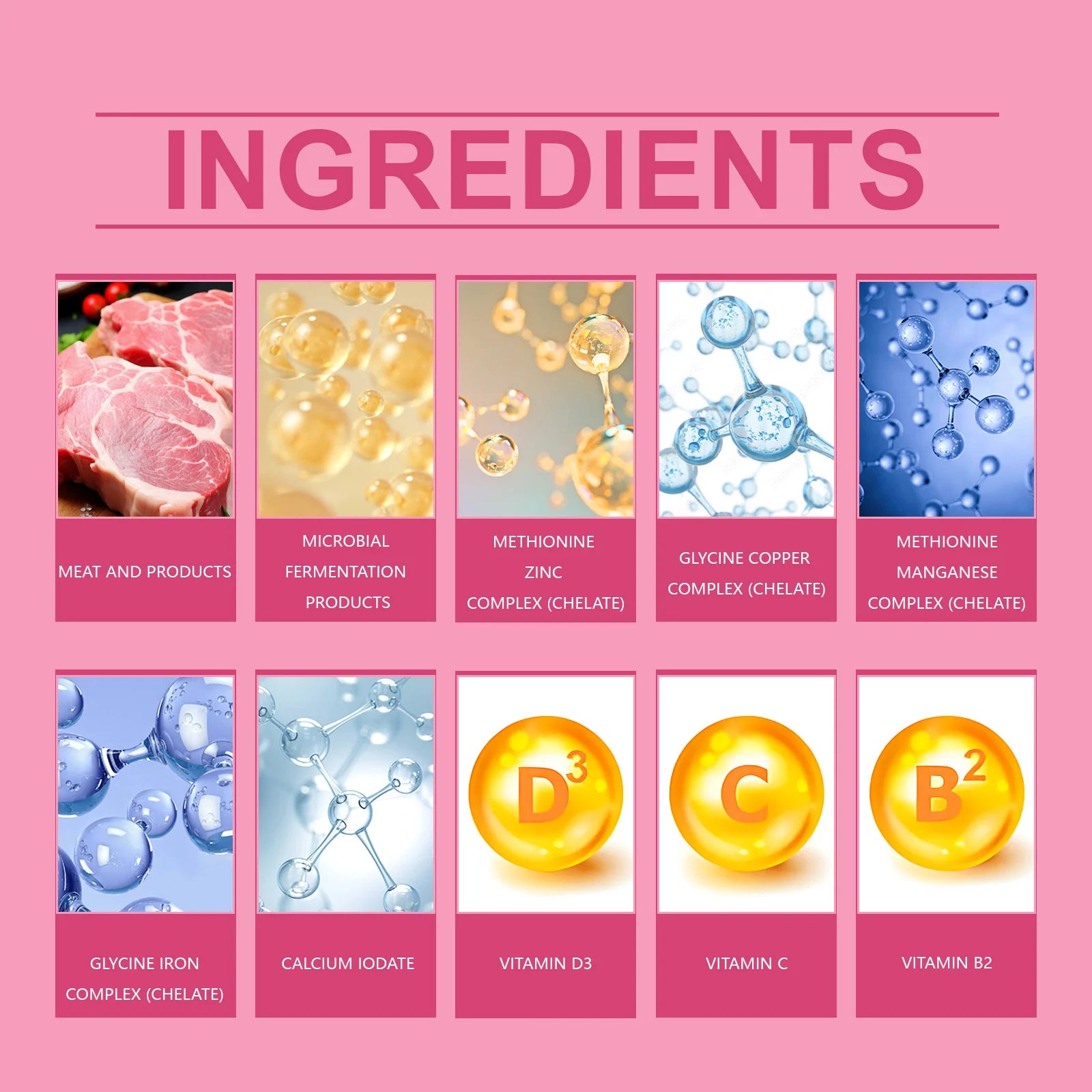 ingredient: Meat and products, microbial fermentation products, zinc methionine complex (chelate) complex