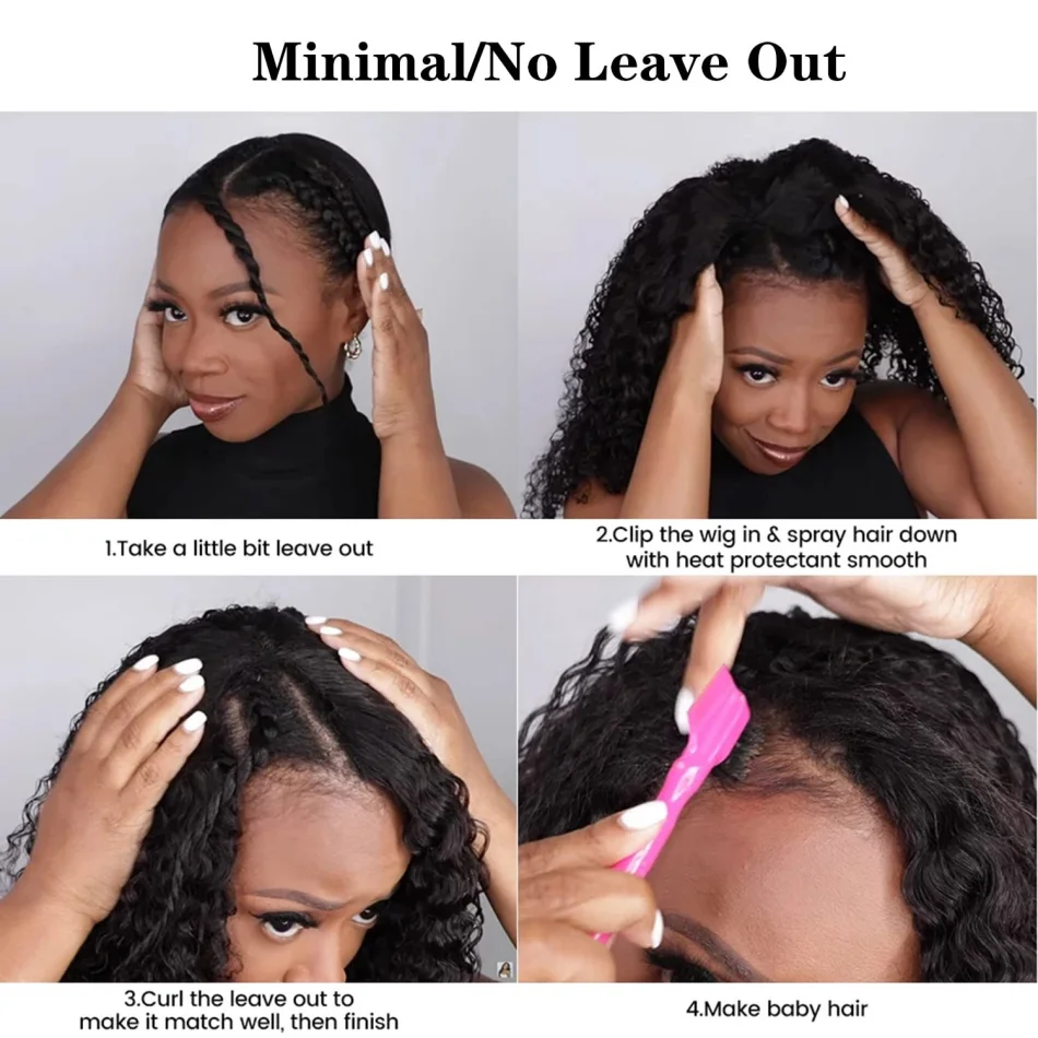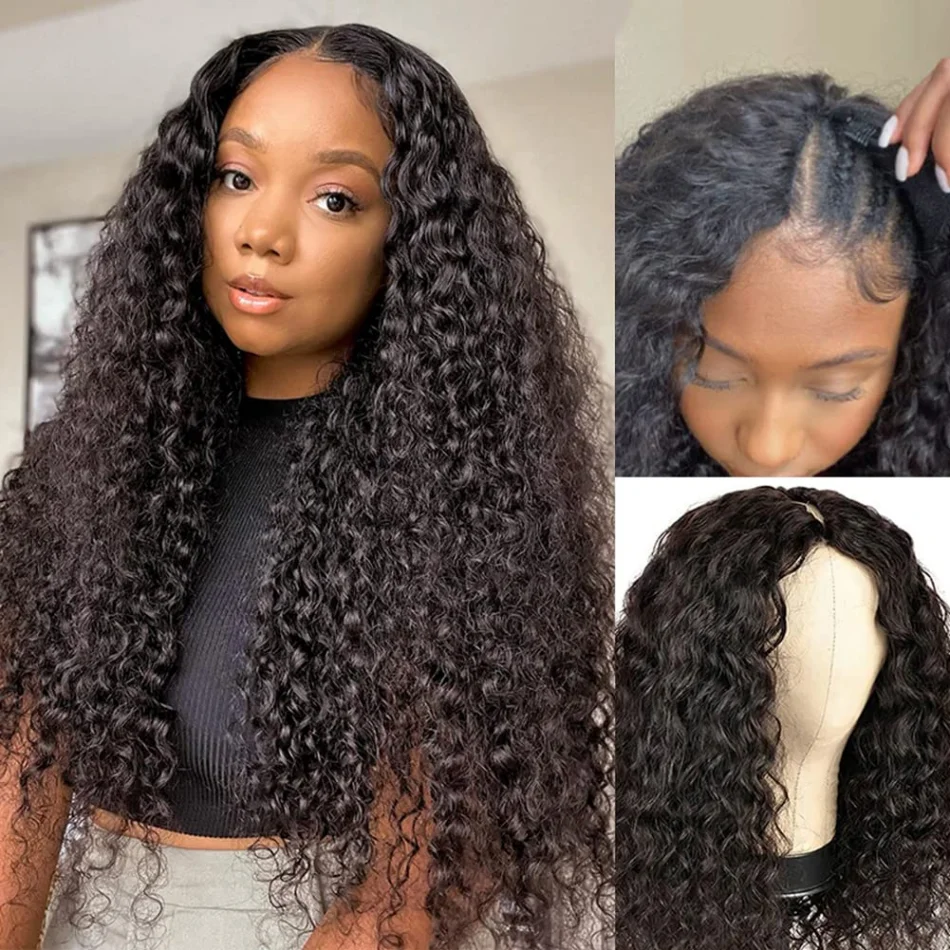 Deep Wave V Part Wig Human Hair No Sew In No Glue 220 Density Natural Color Curly Brazilian Hair For Black Women 30 Inch No Lace