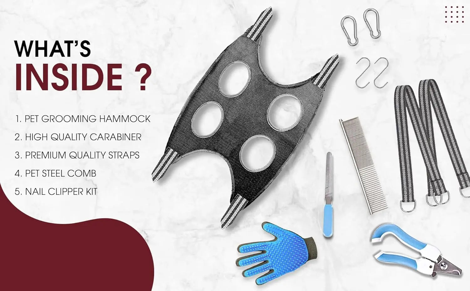 Dog Grooming Hammo For Xl Dogs, 85 Lbs - All-In-One Dog Grooming Kit, Dog Harn For Nail Trimming Grooming Kit For Dogs At Home - 1X Gloves, Dog Nail C, Dog Brush For Shedding