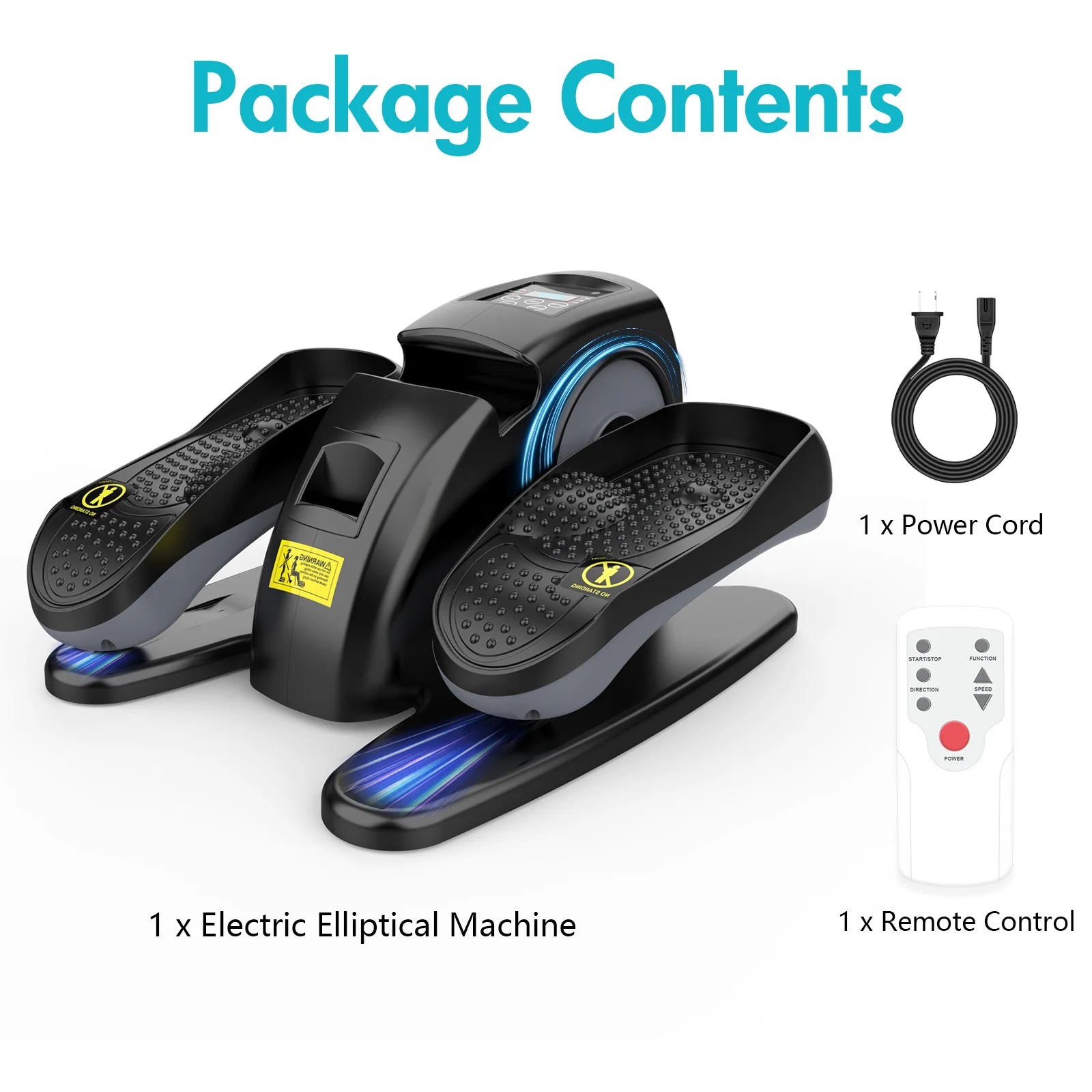 1 x power cord, 1 x English manual, 1 x electric elliptical machine