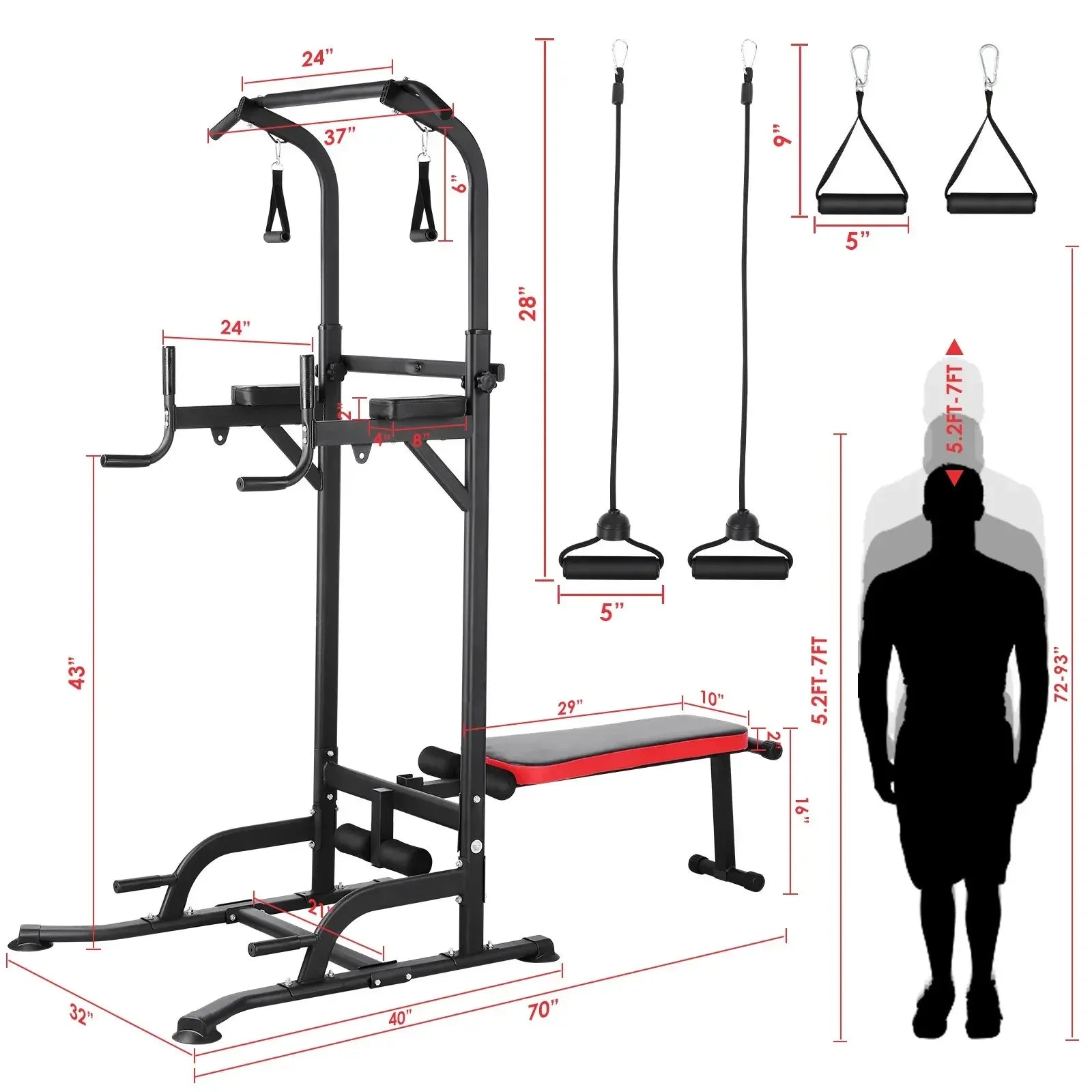 Functional Fitness Gym Style Training Power Tower & Adjustable Workout Bench System Foldable for Pull Ups and Dips, Load 200 kg