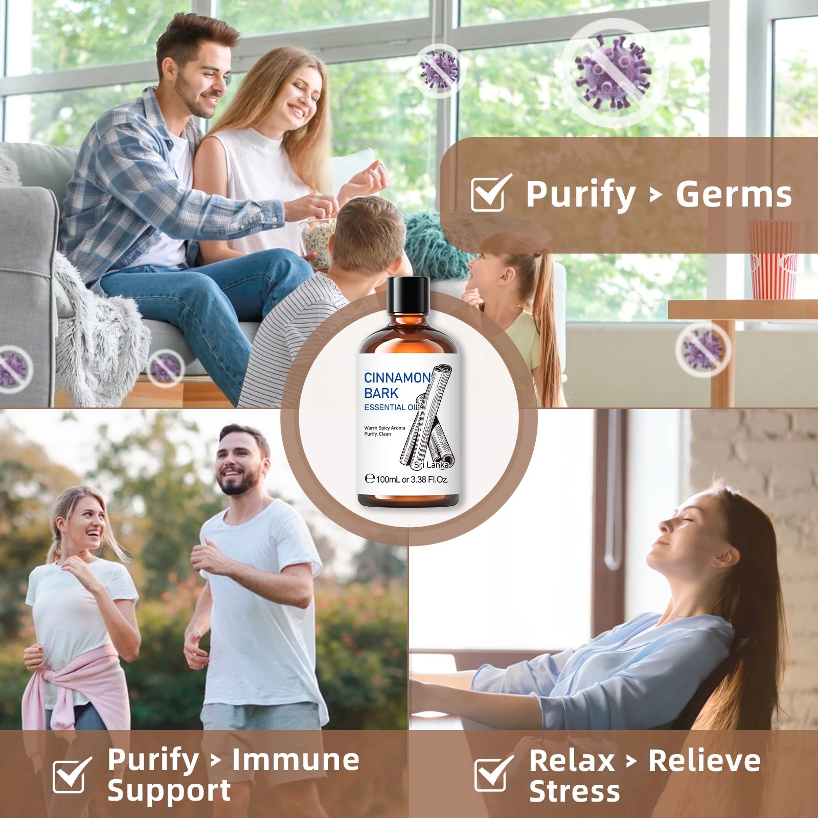 HIQILI 100ML Cinnamon Bark Essential Oils,100% Pure Nature for Aromatherapy, Diffuser, Humidifier, Massage, Relieving Stress