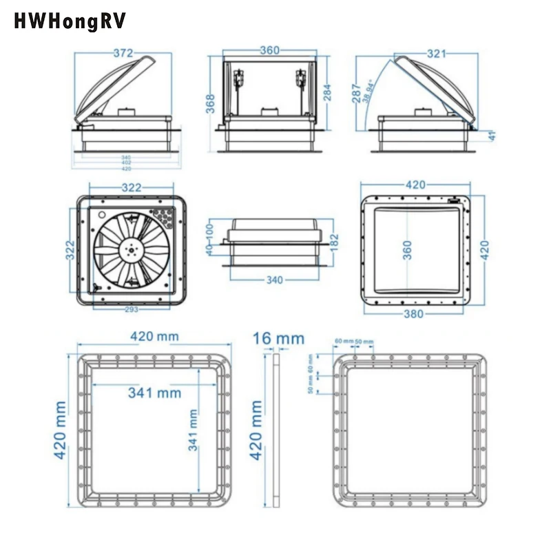 HWHONGRV RV Vent Fan With LED Light,RV Roof Vent Fan 5-Speed-Reversible,RV Bathroom Vent Fan DC 12V for Trailer, Camper, Van
