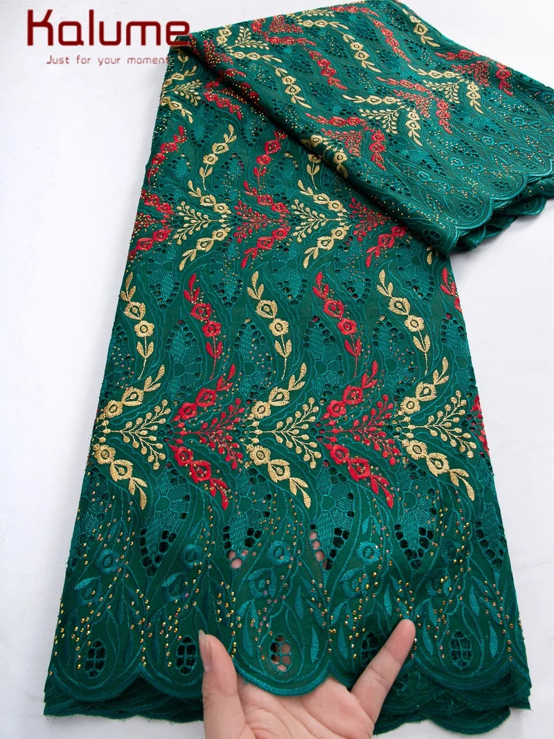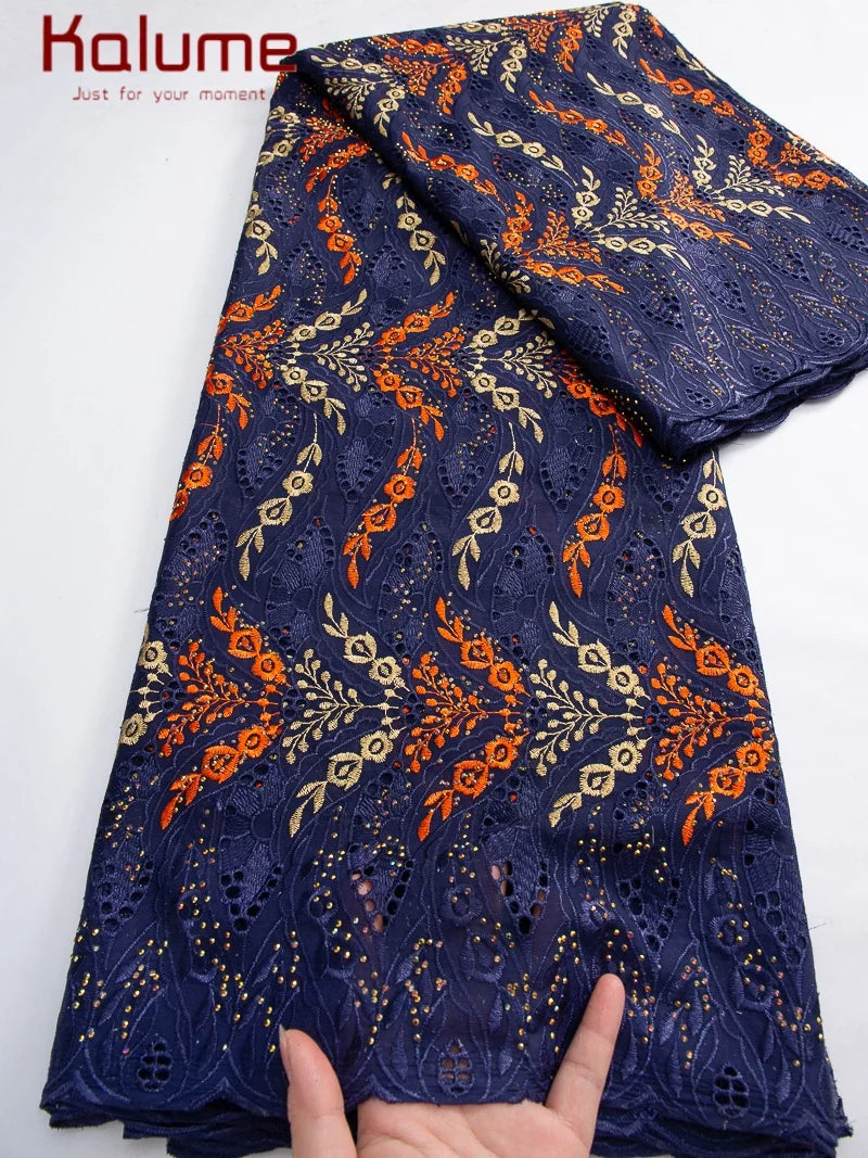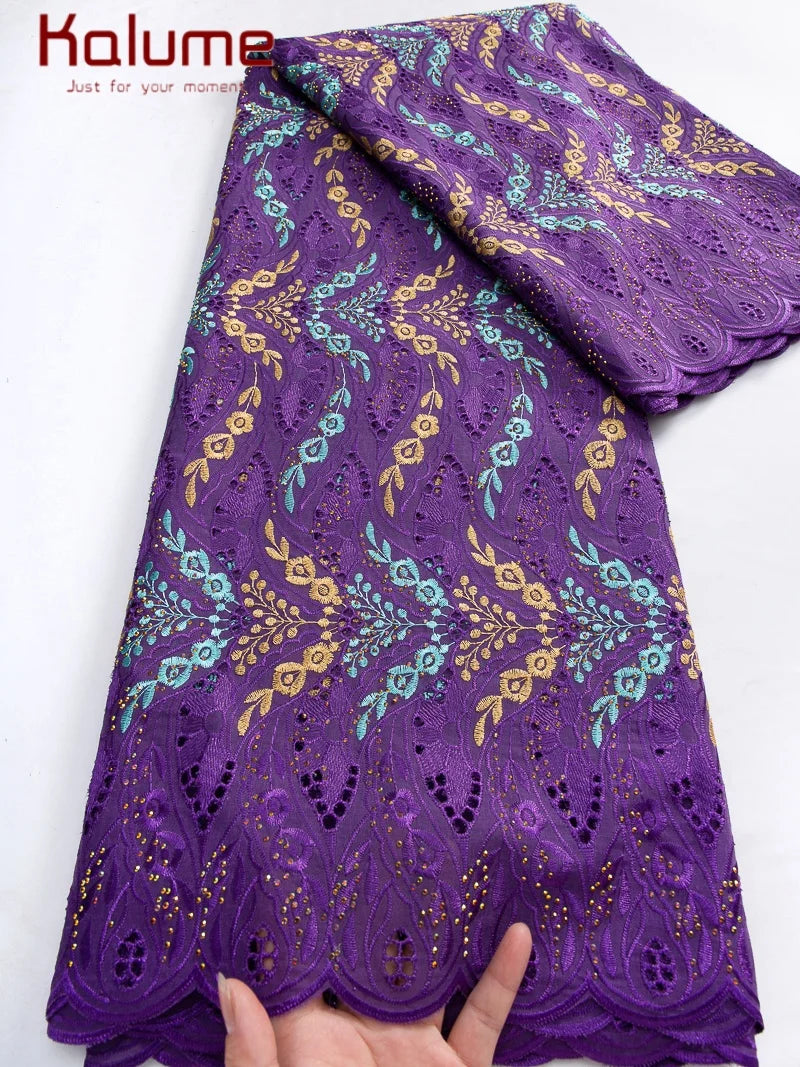 Kalume African Cotton Embroidered Lace Fabric With Stones 2025 Nigerian Swiss Voile Lace Fabric Flower For Sewing Dress F4325