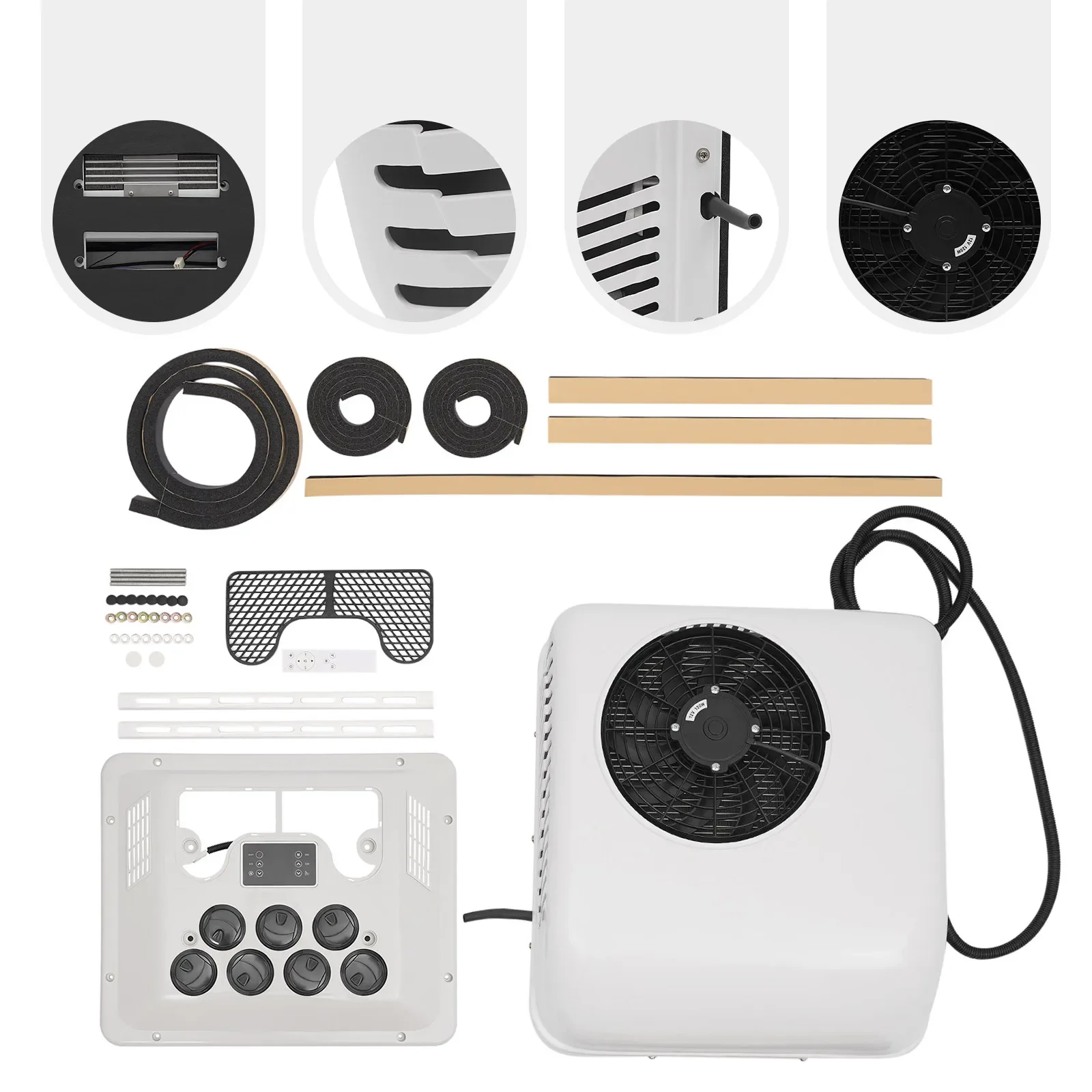 RV Heating and Cooling Integrated Top Air Conditioning 12V 750W White Air Conditioner Electric Rooftop AC Unit Fit Motorhome