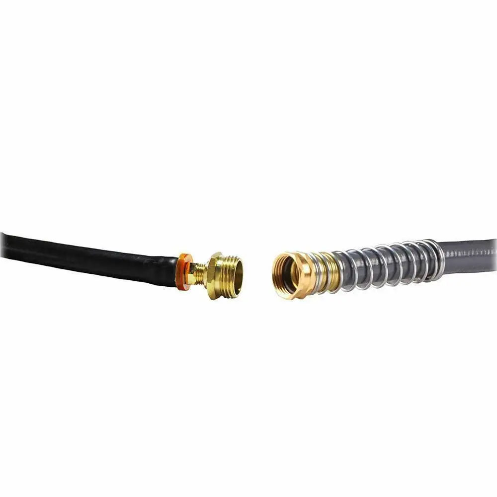 - Flexible hose allows the adapter to access tight spaces and minimizes stress on pipes and fittings. Pre-assembled length: 11.5 inches approx. Pressure rating: 250 psi. 100% outdoor rated, virtually indestructible, impervious to water and oil.