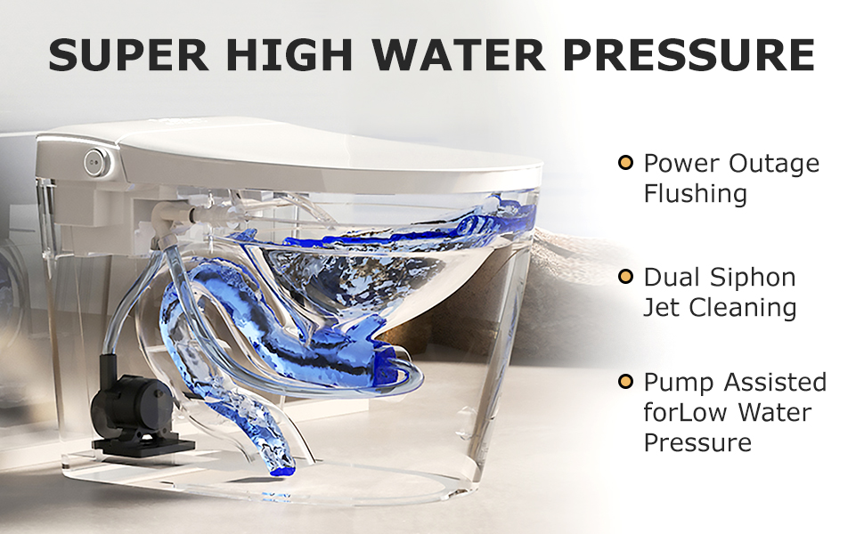Utilizing Siphonic jet, our smart toilet combines siphoning and jet flushing to reduce waste accumulation and maintain cleanliness. The built-in battery design ensures normal flushing even during power outages