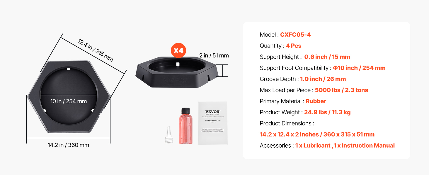 Enhanced Stability: Each trailer jack pad has a maximum load capacity of 5000 lbs (2.3 tons), providing secure and stable support for your RV, preventing deformation.
