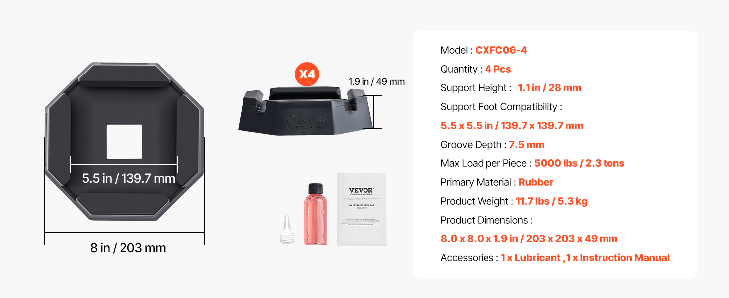 Embedded Design: This RV jack pads are specifically designed for square support feet measuring 5.5 x 5.5 inches, easy to install, reducing wear on the bottom of the jack, and extending its lifespan.