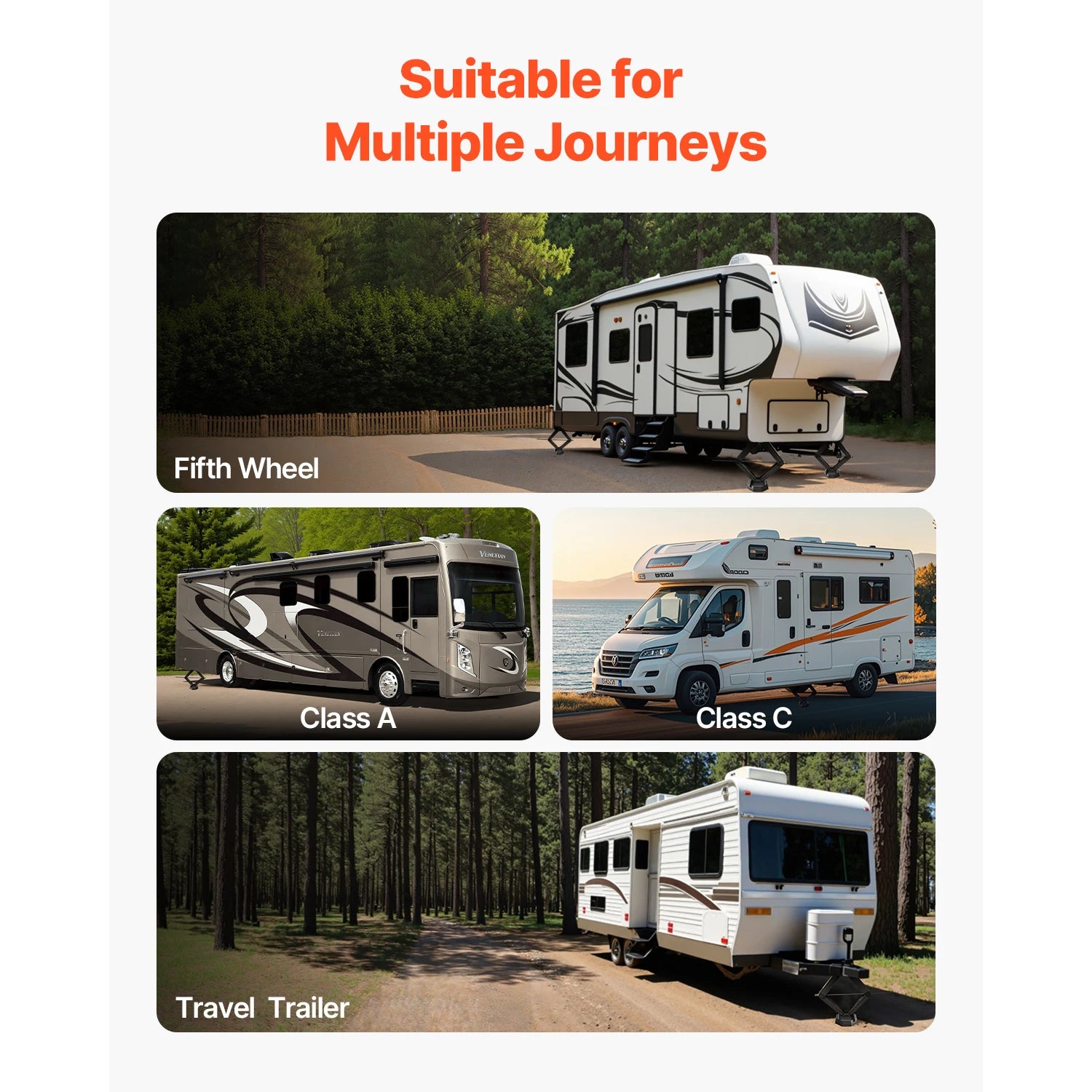 Multiple Vehicle Types: Our RV pads are suitable for fifth-wheel trailers, camping trailers, and Class A and Class C RVs. Enjoy the stability and protection for your travels with our pads.