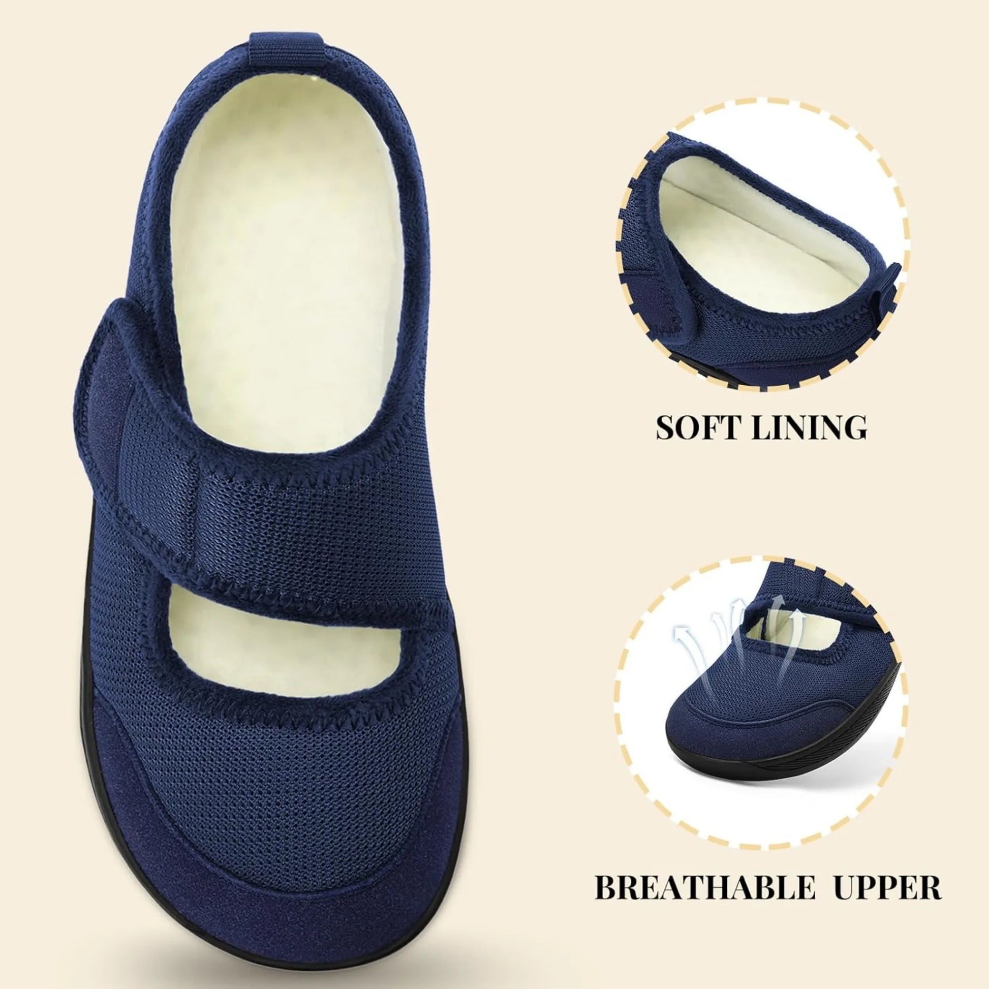 Womens Slippers Wide Width Diabetic Shoes Edema House Barefoot Walking Shoes Adjustable Indoor Outdoor Slippers